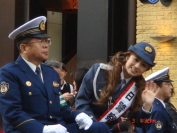 オープンカーに”1日警察署長”の小倉優子さん、半田健人さん。