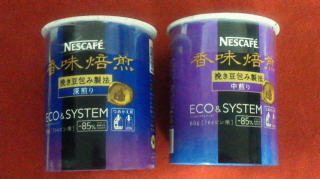 写真の”挽き豆包み製法”の中煎り&深煎り。