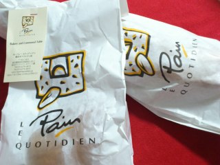 ハムエッグと、昨日、浅野屋で買ったパン。