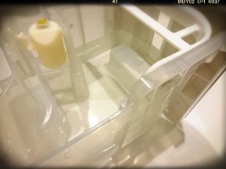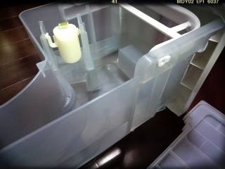 洗濯の途中で、洗面所辺りを動き回るのに、邪魔なトコにいてて、