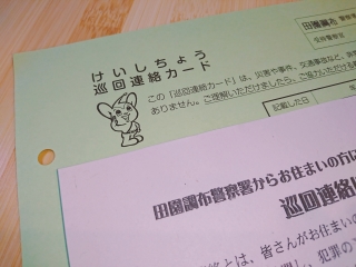 お家に帰ってきて、ポストに入っていた『けいしちょう巡回連絡カード』