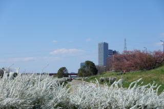多摩川沿いは、五分咲きや七分咲きのサクラが多く、