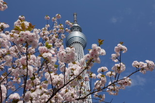 スカイツリー麓の八重桜は見頃で、いい写真が撮れたよ(*^-^*)