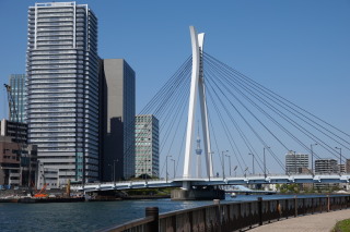 結ぶ、隅田川橋梁に新設された歩道橋。