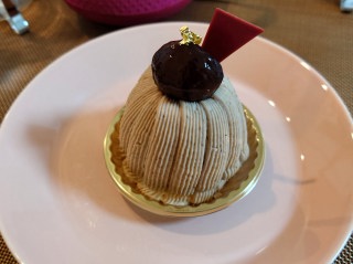 ルームサービスのケーキセットでお茶。