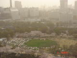 大阪城公園に行ってきました。 右の写真は、天守閣から撮ったのですが、黄砂の影響か、かすんでます(>_<)