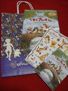 来場記念(?)のシールと、くじ引きで当たった、プーさんの紙袋。