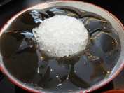 ぐりパパの『黒みつかき氷』 最初、宇治金時って言ってたんだけど・・・ 何か、想像出来るよね、味。 他のお店ではない味にしたらいいのに〜ってブツブツ言ったからか、 変更してたよ(笑)