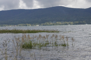 台風の影響で湖水が2m上昇したとかで・・・ 湖畔のススキがつかってしまってます。。。