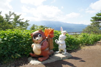 『カチカチ山ロープウェイ』 展望台にはタヌキとウサギが・・・ ホントはこの奥に富士山が見えるんだよねぇ〜