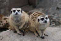 『富士サファリパーク』 ●ミーアキャット 他の仲間たちは、仲良く遊んでるのに、左の写真の子は、 キョロキョロしてて・・・ ぐりパパ曰く「見張りさせられてる」って(笑)