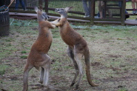 『富士サファリパーク』 ●シロカンガルー ●アカカンガルー シロカンガルーのお腹の袋にも赤ちゃんが・・・ アカカンガルー、ケンカ中?