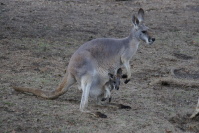 『富士サファリパーク』 ●アカカンガルー お腹の袋に赤ちゃんが・・・ チラッと見えたり、隠れたり〜 右の写真は、袋から出てきた赤ちゃん。 まぁまぁデカいやん^_^;