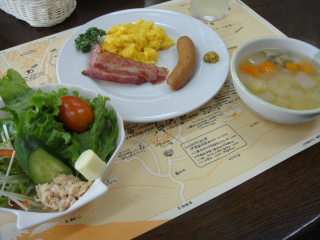 保養所の朝食です。 パンの写真を撮り忘れた・・・(゜o゜)