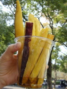 ●さつまいもスティック ●梅ヶ枝餅 さつまいもスティック、揚げたてでアツアツ。 蜜をつけながら食べました。 太宰府名物の梅ヶ枝餅も、焼きたてで美味しかったぁ〜(*^_^*)