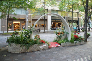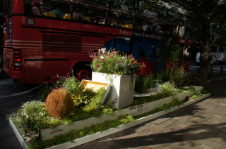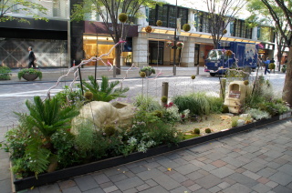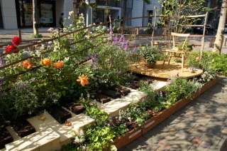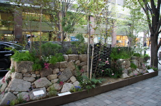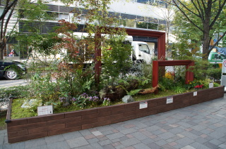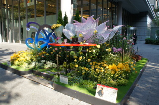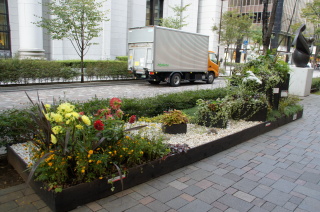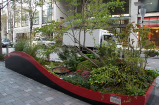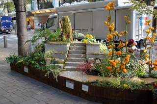 丸ビル前のテーマガーデン。 元気!FOR JAPAN.〜つなげよう 花笑み〜 『花笑み』とは・・・ 万葉の時代から使われている言葉で、万葉集にも登場する歴史ある言葉。 花が咲くこと、咲いた花のような笑顔を表しているんだとか〜