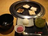 本日の夕飯です(*^_^*) 網焼きを5種類の塩(にんにく・柚子・梅・胡麻・唐辛子)でよばれました。 最後に、お茶漬けとデザートが!!!