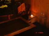 『自然浴 離れの湯 あけび』の個室貸切露天風呂にある 檜風呂(?)と、陶器の湯です(*^_^*) ホテルで、アロマキャンドルや、ヒーリングCDの貸出しがあり、 1時間楽しむことが出来ました♪