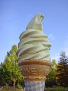 『みんなの原っぱ』で食べた、ハニーソフト。 青空の下でのソフトクリーム、美味しかったよ(^O^)