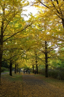 神宮外苑のイチョウ並木もキレイだけれど、人通りが多過ぎて、 この”黄色の絨毯”を写真に撮るのは難しいけれど、 ここは、いい感じに撮れました♪