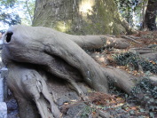 左の写真は。。。 道の邪魔になる根を切られそうになった杉が、 一夜で根をぐにゃりと曲げたという言い伝えがある『たこ杉』 右の写真は。。。 高尾山薬王院の境内です。