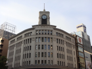 銀座のシンボル『和光』の大時計塔。 確か。。。 ぐりが昨年、初めて銀座に来た時は、改修工事中でした。