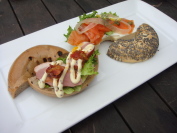 本日のランチ★ 左は。。。 ぐりが注文した『PANINI』 ベーグルサンド(スモークサーモンとクリームチーズ)です。 右は。。。 ぐりパパが注文した『LAGO』 じゃことレタスのアーリオオーリオです。 テラス席で食べたんだけれど、気持ちよかったです(*^_^*)