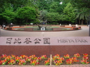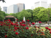 お花いっぱいです♪ バラと噴水と、丸の内界隈のビル群・・・ 日比谷公園は、”オアシス”ですね(*^_^*)