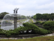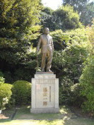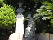 左が、鳩山和夫さん・春子さん、右が、鳩山一郎さんの像です。