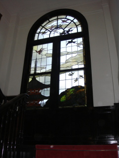 1階から2階へ上がる、踊り場のステンドグラスです(*^_^*) あっちにもこっちにも、”鳩”だらけでした^_^;