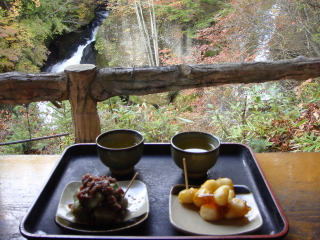 そして・・・ 竜頭の滝を見ながら、『竜頭之茶屋』で”施無畏団子”を よばれました(*^_^*) 美味しかった♪