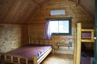 今日のお宿(*^_^*) セミダブルぐらいの大きさのベッドと、2段ベットがあり、十分な広さでした。 調理場もお手洗いもとってもキレイだし、キャビンということもあってか、 お隣さんに気を遣わなくってもいいし、車を際まで持ち込めるので 積み下ろしもラクラク♪