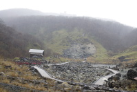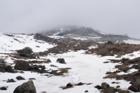 かなり濃い霧と、寒さ、そして、雪。 東京では桜の花も終わり、日中は半袖でも十分な日が多くなってきてるのに・・・