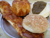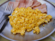 『PENNY LANE』で買ったパンと、 頑張って作った(?)スクランブルエッグとベーコン。 火力が弱いせいか、キレイに焼けなくってねぇ(>_<) そぼろみたいになってしまった・・・