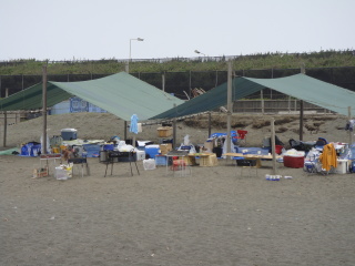 浜辺に並べたバーベキューグリルは、全部で5台。 途中で更に(?)もう1台増えてました^_^;