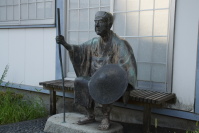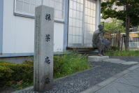 旅姿の芭蕉が、縁側に座っている(?)オブジェ。 『奥の細道』にここから出掛けた、っていうより、休憩してる感じ(笑)