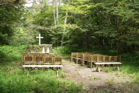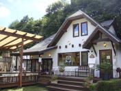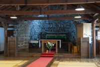 木造の建物と、石造りの礼拝堂。 モダンな雰囲気〜