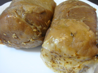 夕飯用に買って帰った、肉巻きおにぎり(*^_^*) ちょっと味が濃かったけれど、美味しかったよ♪