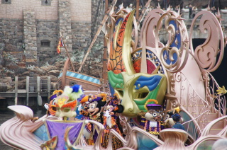 『インディ・ジョーンズ』から出てくると、通路にいっぱい人が・・・ コレは何かあるんだっ! (↑ショーの時間、調べて行ったのに、見落とし?) 『チップとデースのスケルトン・フィエスタ』 1日、2回のショーというより、ちょっとしたパレードです★
