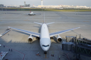 目の前に飛行機が! でかっ!!! それに、かなりの轟音^_^;