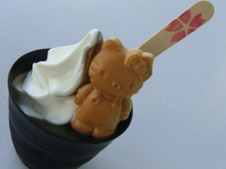 キティちゃんカステラがのっています(*^_^*) 胴体はぐりが、頭部はぐりパパが食べちゃいました・・・ 2等身でよかったよ、キティちゃん。