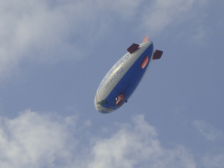 参拝の列に並んでいると、上空には、飛行船が!