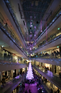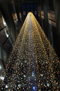 『GYRE』にあるイルミネーション。 地下1階から3階までの高さ30mの吹き抜けに 室内イルミネーションとしては都内最大級の<BRIGHT FALL>