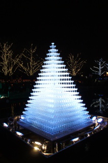 『キングオブシャンパングラスツリー』 約6500個のシャンパングラスを使った、高さ4.5mのツリー。