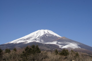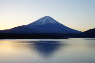 日の出前の富士山。 湖面にも富士山が映り、キレイ(*^_^*)