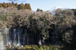 細くて、白い、幾筋もの滝が・・・ 後ろには富士山が見えます(*^_^*)