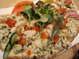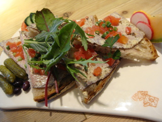 桜チップでスモークしたサーモン、燻製したターキーとポーク、