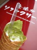 『ぐり茶の杉山』で食べた、ソフトクリーム。 左のソフトクリームは、ぐり茶パウダーがかけられていて、 混ぜながら食べるそうで・・・ 抹茶アイスとはまた違う風味で、美味しかったぁ♪