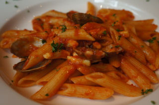 本日のパスタは、魚介のペンネ。