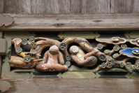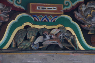 『日光東照宮』にて。 ”眠猫”の真裏にある、雀の彫刻。 猫が起きていれば雀は食べられてしまう(?)けれど、猫も居眠りして 雀と”共存共栄”。 戦乱が治まり、平和な時代がやってきたことを表しているという解釈も あるのだとか・・・